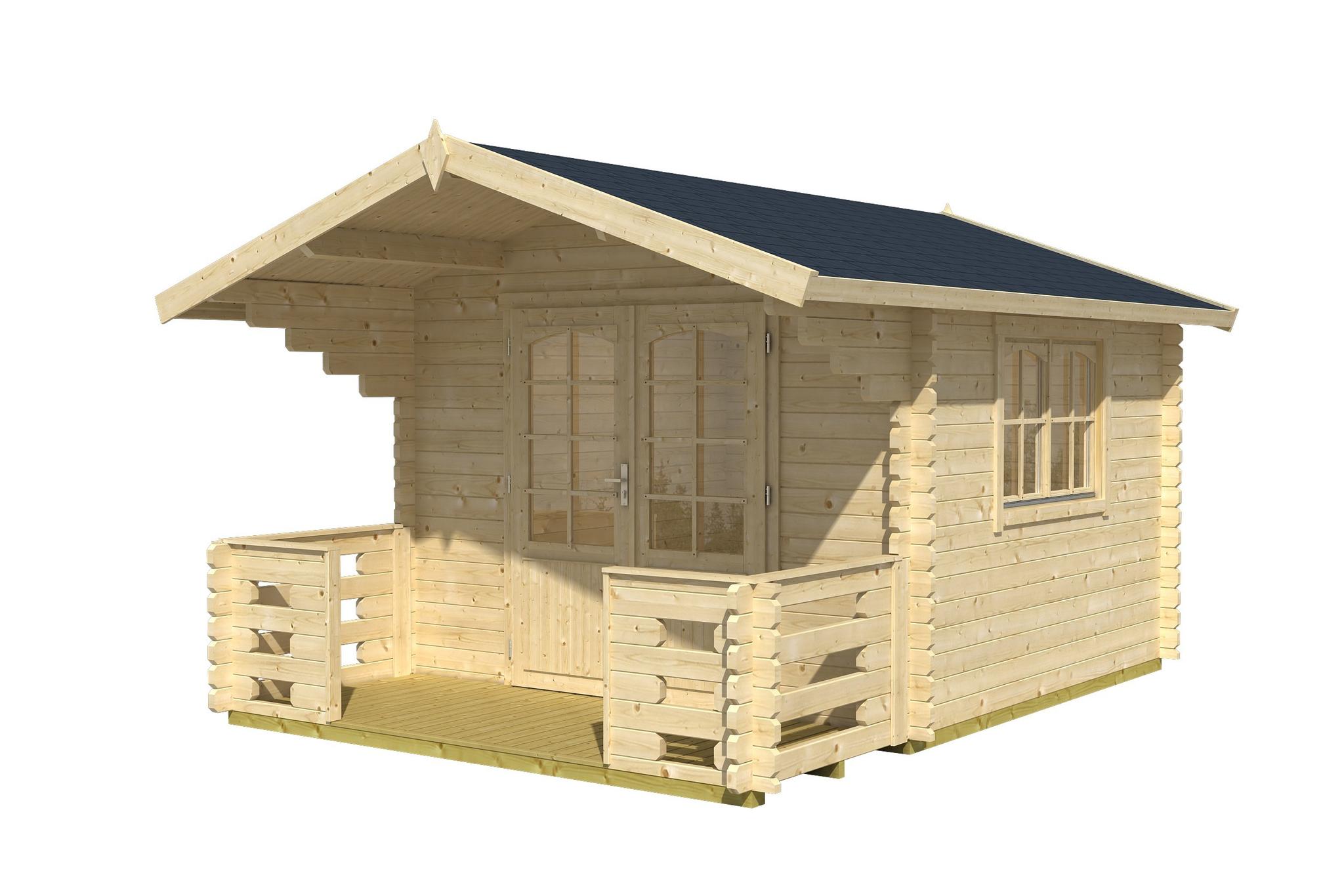 Both the door and windows are double glazed to standard as is our trademark and the cabin itself allows a reasonable amount of natural light in during the summer months. In winter, study 44mm thick timber protects you from the elements. Complete with a generous amount of space this cabin offers you a whole range of possibilities.